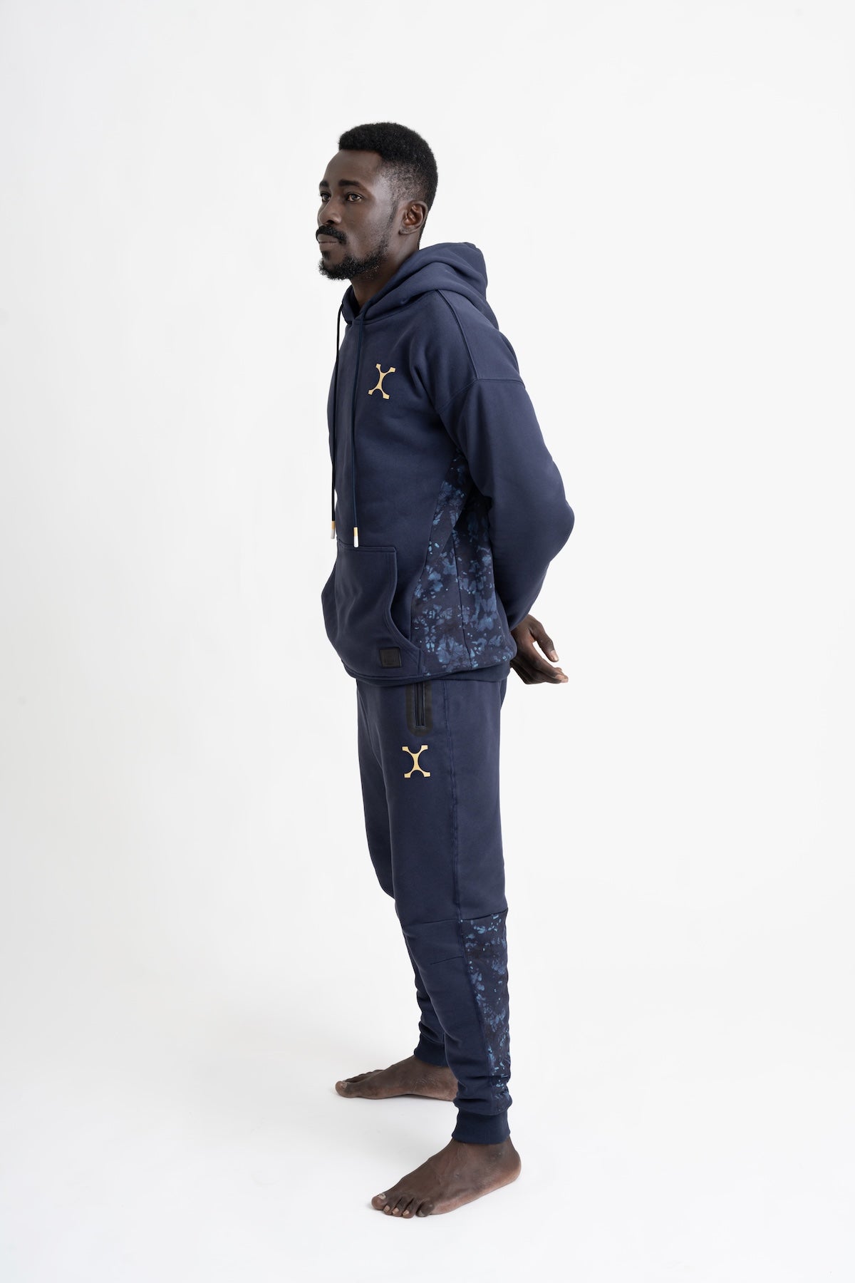 Pensés pour compléter le hoodie indigo, ces joggers slim sont coupés dans un coton premium mi-épaisseur doublé molleton pour un confort de longue durée. Le bleu inspiré des teintures locales apporte une touche culturelle, tandis que la coupe longue tombe parfaitement à la cheville pour une allure épurée.